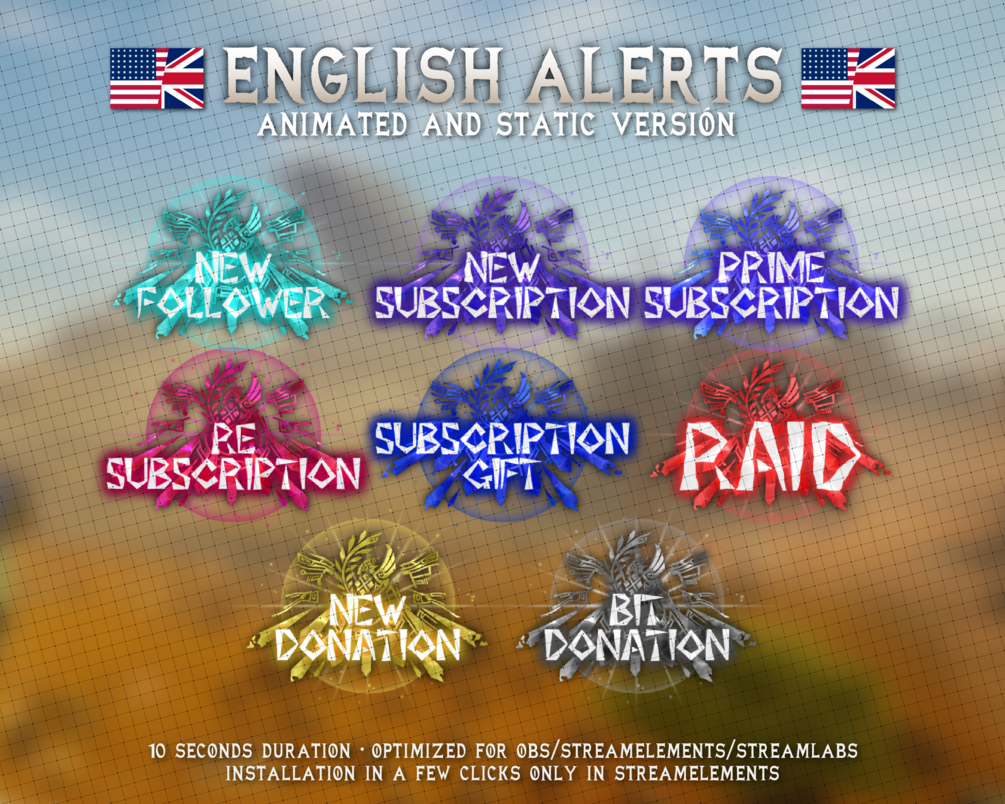 x8 Animated alerts (.webm) x8 Static alerts (.png) + Tutorial